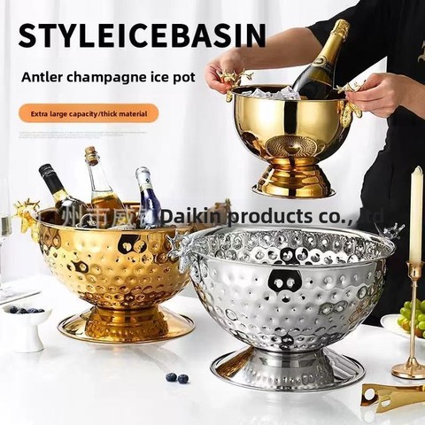 Cubo de hielo de gran capacidad para Bar, vino y cerveza, ensaladera moderna de acero inoxidable con orejas de ciervo, cubo de hielo martillado para cubo de champán