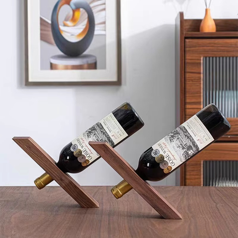 Modern Creative Wooden Wine Rack Black Walnut Rectangle Ornament with Red Wine Bottle Holder Stand Display for Home Hotel Party