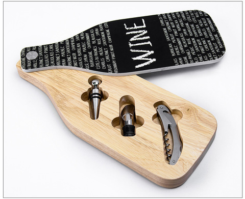 Kit de accesorios de vino de 5 piezas de gama alta creativa, juego de abridor de vino de acero inoxidable, caja de regalo con forma de botella de vino